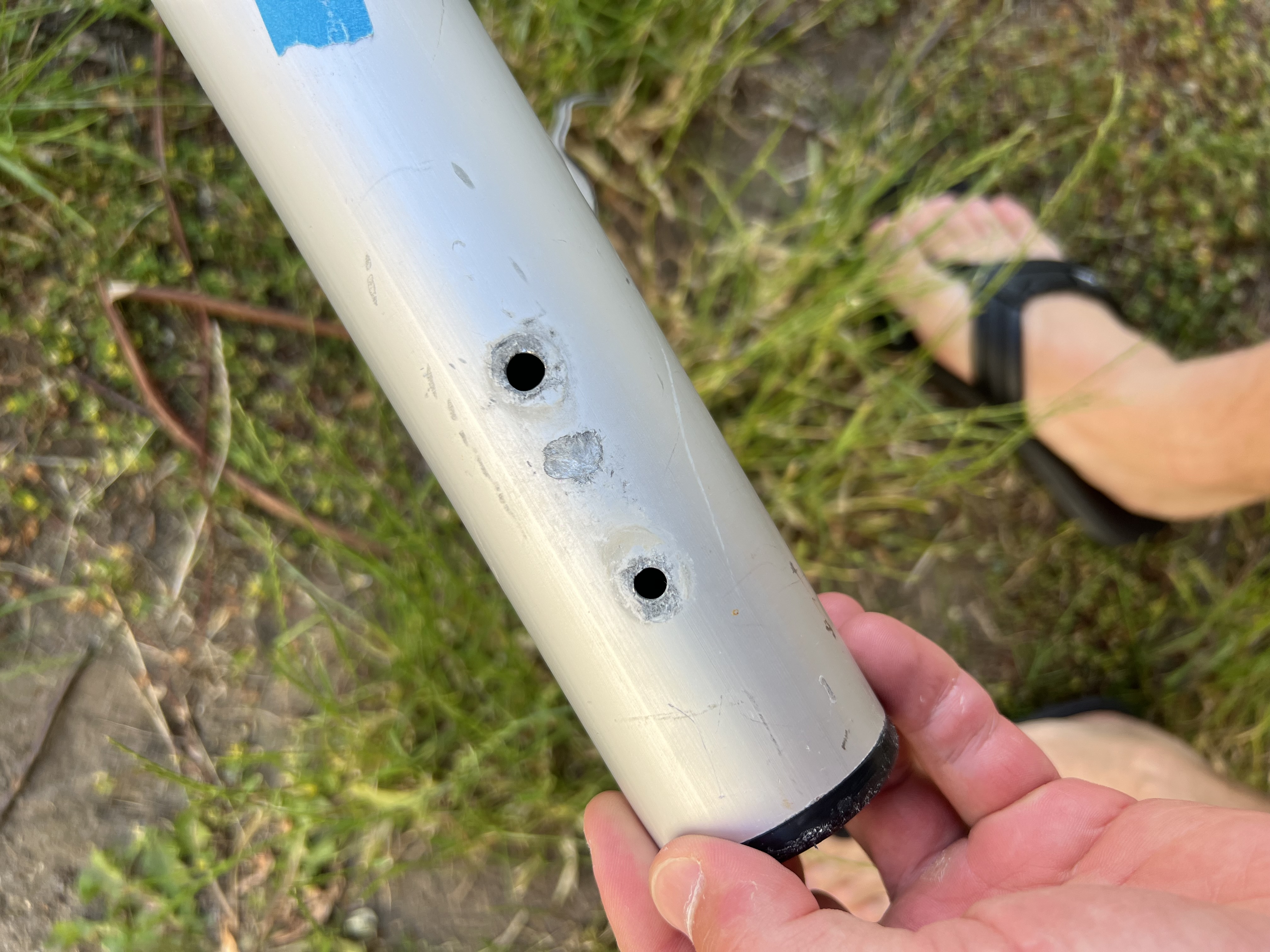 We tried to fix the attachment of the aft block because there was a risk of it coming loose. We attempted to use new 5 mm rivets, but even those are too small and don’t hold in the boom.